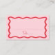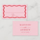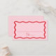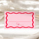 Lägg till en snyggt till din bröllopsmottagning eller speciella händelse med de här Modern Vågigt Ram bröllop-platskorten! Återdesignen visningarna "Bord" i ett handskrivet rött skript med utrymme så att du kan skriva gästens namn och bordsnummer. Ett rött vågigt gräns omger designen som kontrasterar mot en ljus rosa bakgrund. På baksidan av platta platta kort finns namn och bröllop med fetstil i röd skrift.