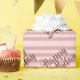 Modern och giftig papper med ro guld anpassade grattis på födelsedagen på en vacker rosa, mauve, ro guld rand bakgrund.