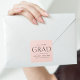 Snyggt studenten-klistermärken med "Grad" som visas i svart, modern text med rosa. Anpassa de moderna studenten-klistermärkena till student namn, namn och studenten. Personlig studenten-klistermärken är perfekt till använda för förslutningshöljen, studentfester etc.