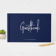 Minimalistisk gästbok med ord "Guestbook" i modernt skript mot redigerbar bakgrund färger (klicka på "anpassa" och ändra bakgrunden färg från alla sidor). Underbar för semesterbostäder, semesterhyror, sängplatser och rastplatser osv. Anpassa den genom att ersätta platshållartexten för att lägga till informationen. Om du vill ha fler alternativ klickar du på knappen "Anpassa". *Observera att Zazzle Watermark som visas i zoomförhandsvisningen INTE visas på den färdiga tryckta produkten. © Rosewood and Citrus