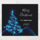 Ett trendig och en modern etikett på party-öl flaska i svart, blå och vit. En svart bakgrund med ett glittblått Julgran, som dekoreras med stjärnor. Med texten: God jul skrivet med ett modernt och trendig stort, vitt, stavat stil-skript. Mallar för din familj namn och ett år.