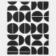 Halvsekts svart och vit cirkelformad abstrakt design.