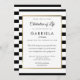 Med en klassisk svart och vit rand-bakgrund har firande i livets begravningsinbjudan en elegant faux guld foil gräns som anger detaljerna i chicens typografi. Designad av Thisisnotme©