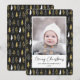 Skicka semesterhälsningar med anpassade och personlig till vänner, kolleger och familj i enkla, minimalistiska, elegant, roligt, festliga och moderna fotokort! Ett vackert ram av olika typer av guld och vitt julskog Gräs Träd på svart bakgrund omger ditt foto på kant papper. Hälsning " God jul " skrivs i elegantens kalligrafi, och i det följande visas anpassningsbarnas meddelande hälsning från din familj namn i modern typografi. Återvänd för att visa en vacker bakgrund till mönster i fullt, Julskogen Gräs Träd.