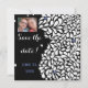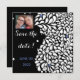 Den moderna svarta och vita blommigten som sparar det datum som står stilla kan anpassas för alla händelser och datum. Lägg till fotot, ange händelse och datum och du är inställd på att meddela vad som helst från bröllop till studenten. Dold svart bakgrund och skarpa vita blommor och petaler med antydningar om dammiga periwinkle färg accents. Originalfärgning av digitalt material. Om du vill att accent färg ska vara något annat, säg mig, jag är lycklig för att göra det åt dig.