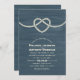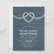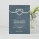Modern knyt till den unika inbjudan till nollkuponger för Nautiskt bröllop. Kreativets bröllopsinbjudningar. En hjärtformade knut och vacker typografi på kreativets blå bakgrund. Underbart för bröllop, strand eller bröllop. Lägg bara till dina detaljer. Designad av http://superdazzle.com