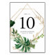 Kort för tropiska bordsnummer i elegant med bordsnumret omgivet av ett faux guld foil geometriskt ram och grönt vattenfärgstropiskt löv. Utformningen upprepas på baksidan av kortet. Designad att samordna med vår Tropiska samling Guld bröllop. Om du vill beställa varje bordsnummer skriver du bara numret och lägger till i kundvagnen. Upprepa för varje nummer tills du är avslutat.