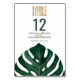 Elegant, modern och enkel vattenfärgad strand i grönt sväljer ost monstera löv på vit bakgrund med faux tryckt guld folie typografi sommarkort för bordsnummer i bröllop. Den här klassiska och sofistikerade designen är perfekt för klasser, snyggtar och trendigets bröllopsmottagning. Anpassa med bordsnumren anpassningsbar längst fram eller lägg till ditt eget meddelande genom att klicka på knappen "Anpassa". Lägg också till din egen anpassade monogramsstart på baksidan. All fotoutskriftsdesign.