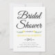 Handskriven typografi gula blommor enkel blommigt bröllop inbjudningskort för möhippan. Den visar namn i ett kursivt skript med handskrivet stil typografi och två små gula blommor med grönt löv. Baksidan innehåller ett blommönster.