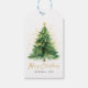 Den moderna vattenfärgen jul Gräs Träd Presentetikett