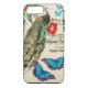 Härlig collage av botanisk konst för vintage av en påfågelfågel, blåttMorpho fjärilar, en röd pionblomma med Ferns, positiva franska annonser för kakao och en rosa de Provence, är på detta apparatfodral för iPhone 7. Bilder är det förföll offentliga området tar copyrightt på tack vare. Collage är vid mig.