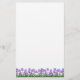 Original- konstdesign av lilla skäggiga irises på anpassadebrevpapper vid studion för två spinnakatter och TPC-kort.