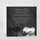 En vacker fyrkantig fotobrollopsinbjudan design. För par som vill ha en enkel men elegant bröllopsinbjudan design. Designen visar brudens och brudgummens namn i en elegant script font. Visas i svart och silver med en elegant svart virvelbakgrund. Anpassningsbar med ert förlovningsfoto och bröllopsdetaljer. Designad av Robin D. Cox.