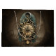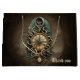 Den mystiska steampunkrörelsen. En fascinerande stålklocka som fångar med sin unika kombination av mekanisk estetik och fantastiskt inslag. Den centrala uppringningen omges av ett hjärtskärt designat krona av gyllene tentakler som elegant krymper utåt och ger urtavlan en levande, nästan organisk beröring. Dessa tentakler framträder tydligt från ram, som är en djup blå grönt med accenter från guld, som skapar en sofistikerad kontrast till det varma guldet av tentakler.