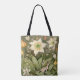 Föreställ er en traditionell botanisk illustration av fantasi-blomsterträdgård med en liten mytisk beast.