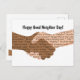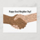 * Den 28 september är den nationella Bra granndagen * Få lära känna dina grannar och bygg en betrodd bekantgrupp runt om i ditt hem. * Har du "bra granne"-kvaliteter? * Använda för informationskort, inbjudan, ett tackkort eller för snabb hej till en ny granne. * Lägg till text som ska skrivas ut, lägg till ett foto och/eller en bakgrund färg. * Handskakutformningen på baksidan av vykortet kan flyttat, tas bort eller ändras. * Klicka på knappen CUSTOMIZE för att komma igång! * Den här designen kan överföras till hundratals produkter. ** Händelsen * Todays * Store innehåller några artiklar för vissa större helgdagar, men oftast för de mindre kända helgdagarna, veckodagarna osv. Kategoriserad efter händelsens månad. Om du är tittar för en specifik helgdag, gå till butiken och se alla produkter.