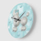 Den roliga väggen tar tid på, med en retro känselförnimmelse. En aqua och en retro mönsterbakgrund för vit och diagram av aqua knäppas lika disketter för att föreställa 12, 3, 6 och 9 klockan. En nätt fluffig tittar vitpudel dekorerar mittet av ta tid på. Skräddarsy för att tillfoga någon text som du önskar. Gör en underbar gåvaidé.