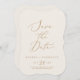 Detta känsliga guld och grädde bröllop spara datum är perfekt för ett modernt bröllop. Den romantiska minimalistiska designen har en underbar och elegant champagne gyllene gult-typografi på en elfenbensgräddbakgrund med ett rent och enkelt utseende.