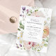 Elegantens bröllopsinbjudningar i blommigten som innehåller uppgifter om bröllop som är framtagna med vattenfärgblommor och löv i skuggor av lätt persika, elfenben, rosa, lila, gult och grönt. Anpassa bröllopsinbjudan till blommigten i vår med uppgifter om namn och bröllop nedan. Den bedövande blommigten inbjudan är perfekt för vår och sommarträdgårdsbröllop.