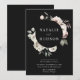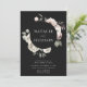 Elegantens bröllopsinbjudningar på vintern blommigt som innehåller ditt namn, omringade av en vattenfärgad blomma och löv med svart bakgrund. Vinterblommorna har en färg-palett med dammig ro, ljus rosa, elfenben och mjuk gyllene gult med eukalyptus löv och vintern bladbete i skalad grönt och grönt av rik.