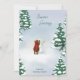 Det här charmiga julkortet med skogstema visar en mysig björn i röd halsduk som bygger en snöman bland snöiga granar. Framsidans hälsning är helt anpassningsbar, så att du kan lägga till ditt eget säsongsmeddelande, medan insidan har plats för en personlig hälsning. Ett varmt och fantasifullt sätt att skicka julhälsningar från din familj till vänner och nära och kära.