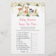 De Prisa spelkorten är ett underbart sätt att sparka av roligten på din babyskabb och garanterat att bli en stor slå! Ge dem bara runt under babyduschen där gästerna får roligt att gissa hur mycket varje baby artikel kostar. Personen med närmaste totalvinst! Mamma kan ta hem baby i slutet av duschen. Du kan till och med anpassa objekten i listan! Utformningen har söta trädsdjur med rosa blommigtar och guld-folie.