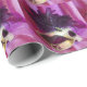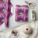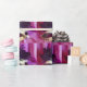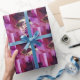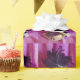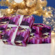 Fotoet av en purpurfärgad maskerad maskerar med featers och blänker.