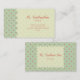 Allt - ämna den generiska visitkorten som presenterar en retro grön bakgrund med liten melonfärgpolka dots. Rent dela upp på högersärdrag en sicksackkant. Melontext. Motsatssidosärdrag som matchar bakgrund. Personifiera med ditt namn och betitla den inre rena sicksackrektangeln. Sök efter att matcha objekt på Jills Paperie.