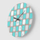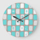 Denna Retro turkos- och vitStarbursts runda Clock är så adorably utrymmeåldern som du ska för att inte vara kompetent att innehålla din entusiasm. Och varför skulle dig önska till? Denna design för det mitt- århundradet för 60-tal moderna inspirerade presenterar en mörk ljunggrå färgbakgrund och ror av perfekt ofullbordade rektanglar i turkos, vit och duvagrå färg. Kitschy vit- och turkosstarbursts förläggas i på måfå utvalda rektanglar. Detta ska modmönster gör dig känselförnimmelsenågot liknande som du hoppade i en tidmaskin och uppsättning visartavlan för irresistibly vintage!