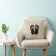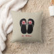 En kudde för lärare som presenterar en illustration av en para av svart flinflip flops, dekorerade med röda äpplen. Personifiera med ditt namn i rött. Motsatssidan är röd.