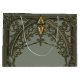 Den röda blomman, blommarna av kärlek. Ett dekorativt ram, försett med rulla mönster, innesluter kärlek budskap som en värdefull skatt. De här filigree-dekorationerna verkar berätta historier om evig kärlek och ogenomtränglig skönhet när de utvecklas harmoniskt mot bakgrunden av den muterade grönten. Nedan, som en känslig motpunkt till den opulenta elegansen i ram, blåser ett enda röd ros med lush grönt löv. Ro är inte bara ett tecken på romantik, utan också ett levande löfte om en passion och vitalitet som genomsyrar hela sammansättningen.