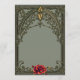 Den röda blomman, blommarna av kärlek. Ett dekorativt ram, försett med rulla mönster, innesluter kärlek budskap som en värdefull skatt. De här filigree-dekorationerna verkar berätta historier om evig kärlek och ogenomtränglig skönhet när de utvecklas harmoniskt mot bakgrunden av den muterade grönten. Nedan, som en känslig motpunkt till den opulenta elegansen i ram, blåser ett enda röd ros med lush grönt löv. Ro är inte bara ett tecken på romantik, utan också ett levande löfte om en passion och vitalitet som genomsyrar hela sammansättningen.