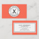 En retro modern visitkort som presenterar en svartvit logotyp för cirkulär på bekläda på en blåttbakgrund. Bakgrundsfärgen kan ändras till något som matchar din affär. Detta skulle är perfekt för en frisör, hårsalong eller en barberare, som logotypen presenterar en para av sax. Det skulle också kostymen en seamstress, en skräddare eller någon annars som fungerar med sax.