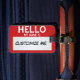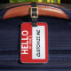 Denna anpassadeprodukt presenterar en röd "hej som mitt namn är…", på engelsk namn brickaklistermärke.