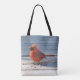 Den röda kardinalen på trä överbryggar toto hänger tygkasse