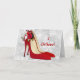 den ursnygga varma röda kickhälet skor/pumpar med en gulliga Santa som älvan hänga från en skonågot liknande jul smyckar tillsammans med texten, mig tror! kort med god jul