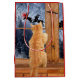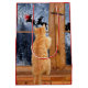 Orange spioner Santa för tabbykattunge och hans sleigh, ut som fönstret som det är, ledde vid röda nosed Rudolph, och funderare den är det uncatchable rött, pricker att glöda ut där gulliga, och gåvan för helgdag för jul för roliga kattälskare hänger lös den medelstora