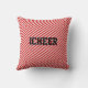 Roliga hejaklacksledare dekorativ kudde som göras i röda och vitrandar. Diagram av en svart silhouette av en banhoppninghejaklacksledare dekorerar bekläda. Svart beställnings- text på baksidaen läser iCHEER, och svarttext på bekläda är klar att personifiera, med din favorit- hejaklacksledare namn. Gör en underbar gåvaidé.