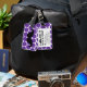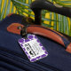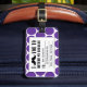 SNYGGT ROLIG RETRO MUSTASCHBAGAGEMÄRKRE. DEN SVART MUSTASCHEN MED LILA- OCH VITPOLKA PRICKER MÖNSTER. "MIG MUSTASCH DIG SOM GÅR MITT BAGAGE TILLBAKA". Rolig gåva för MOVIEFUN© A för henne. För andra färger av mustasch- eller bakgrundspolka dotsmönster behaga kontaktformgivare.