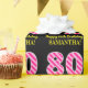 Denna roliga födelsedag-themed slående in pappra design presenterar en stort antal "80", med en mörk rosa och tänder - det rosa randmönster. Den presenterar också meddelandet "den 80th födelsedagen för lycklig," och ett personlignamn. Bakgrunden är färgadsvarten. Slå in papper gilla denna styrka används, när du slår in gåvor som är fallen föra någon i firande av deras 80th födelsedag. [~Z0000376]