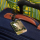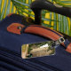 Den romantiska resanden kopplar ihop bagagemärkren bagagebricka