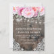 Rosa vattenfärgblommor, charma stränger av ljus, chic snöre och den wood lantliga flicka för ladugården inbjudningar för studentfest