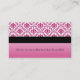 En grå färgklänning bildar stativ på en ljus rosa reflekterande yta på denna magentafärgad damast mönstrade visitkort. Ett personlig eller affärsnamn står ut i det svart bandet med nedanför mer ytterligare information om kontakt. Underbar för modeformgivare, sömmerskor, skräddarear eller någon som bryter in i modefält. Tillgängligt med att matcha produkter.