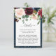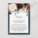 Detaljkort för Burgundy Red Navy rosa blommigt bröllop med elegant bouquet of burgundy, vin, marinblått, , ro buds och grönt eucalyptus lövs