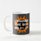 En ska sammanlagd sol- förmörkelse uppstår på Augusti 21, 2017 och att korsa Förenta staterna. Denna humoristiska mugg har en avbilda att föreställa förmörkelsen, i svart, och orangen, med ord "Mooned jag solen" och datera 08-21-17. Bakgrund är grått men kan skräddarsy.