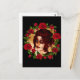 En fängslande figur prydd med Día de los Muertos-inspirerad sminkning, inramad av en krona av scharlakansröda rosor i full blom. Hennes blick är både vild och öm, symboliserar den känsliga balansen mellan dödlighet och grace. Omgiven av livfulla kronblad och djupt gröna blad, firar detta konstverk den tidlösa skönheten hos sockerdockan — djärv, helig och för evigt blommande.
