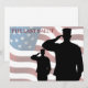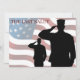 Ät den som fallit med sista hälsningen. Till heder för våra fallna medlemmar av de väpnade styrkorna. Saluting soldater med den amerikanska flagga i bakgrunden.