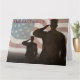 Ät den som fallit med sista hälsningen. Till heder för våra fallna medlemmar av de väpnade styrkorna. Saluting soldater med den amerikanska flagga i bakgrunden.