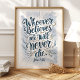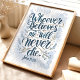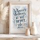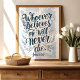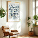 Inspirera tro och hopp med detta eleganta konsttryck med den kraftfulla versen från Johannes 11:26. Den vackert handskrivna citatet i nyanser av blått och guld, prydd med ömtåliga blomsterdekorationer, skapar en lugn och upplyftande design. Perfekt för att tillföra en touch av andlig inspiration till ditt hem, kontor eller bönerum.