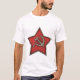 En skjorta som är för manar med en retro sovjetisk propagandadesign som presenterar stylized, bultar och skäran i en röd stjärna.